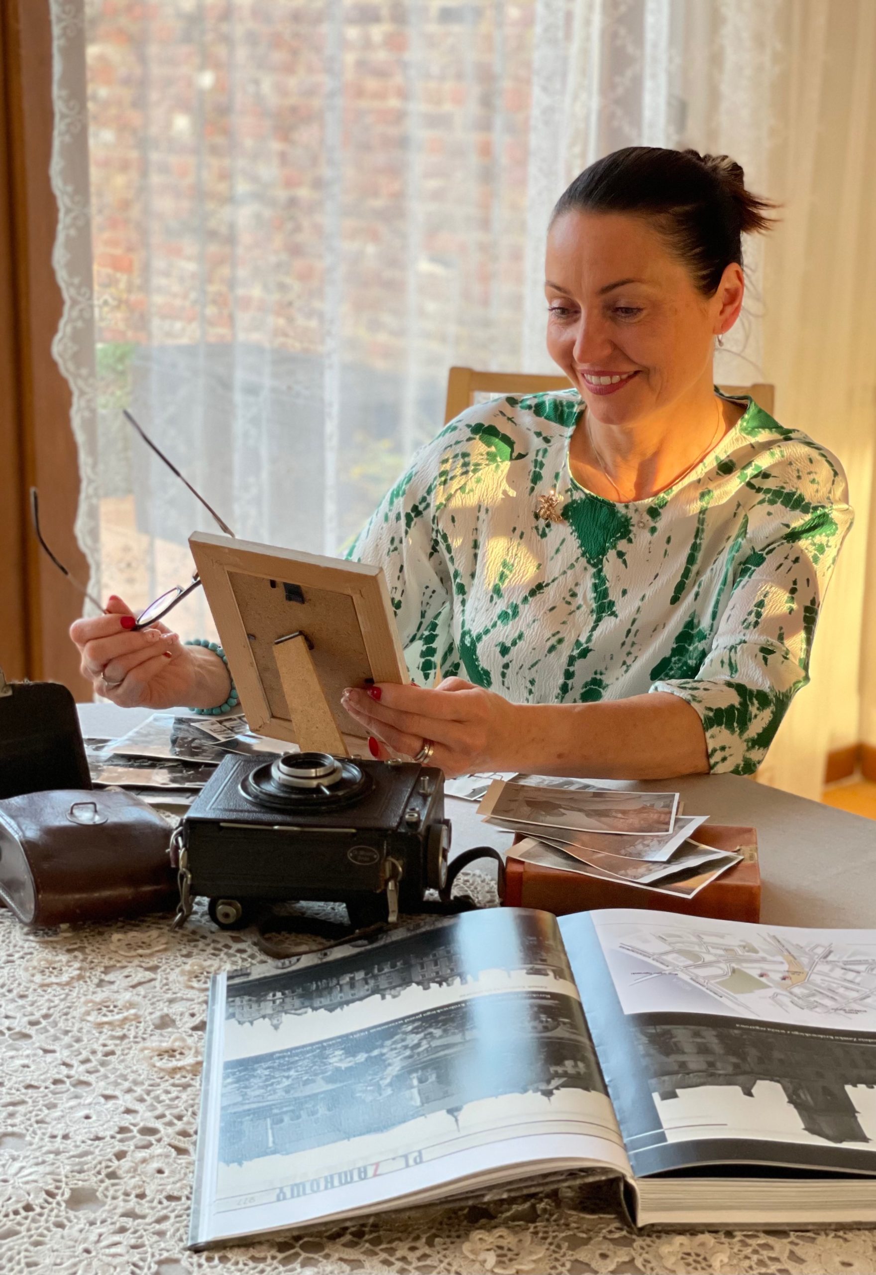 Pani Małgorzata Szczygielska z archiwum osobistym swojego dziadka, Henryka Śmigacza